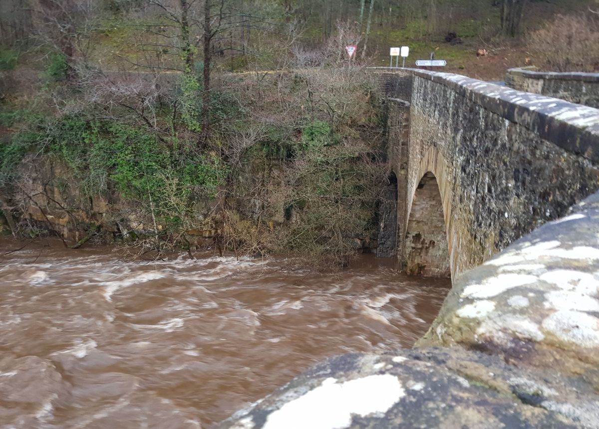 Recent landslip at Packhorse bridge between Orgate and Telfit.